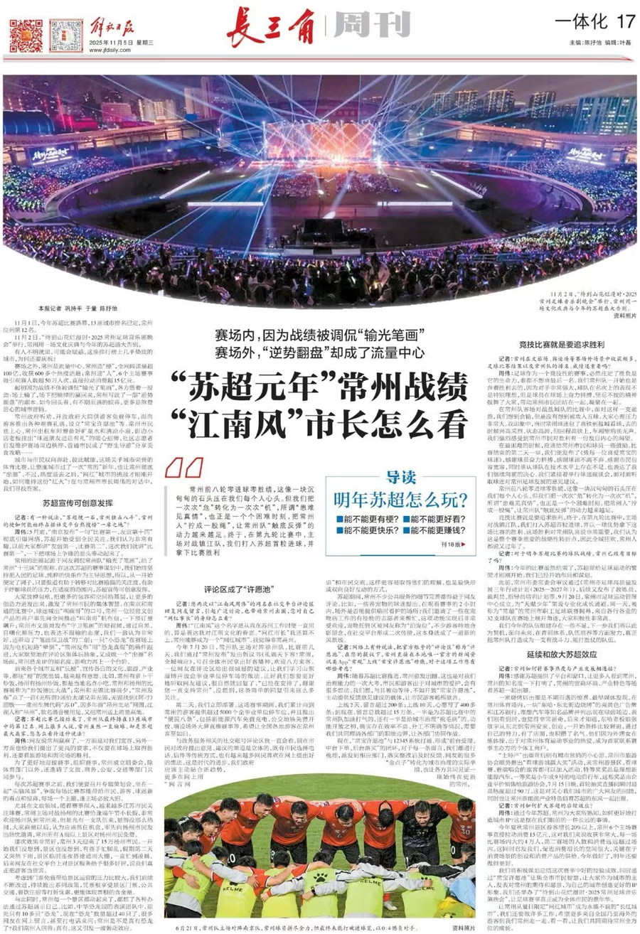 周伟:感谢苏超提供了平台和窗口,让更多人看到常州,常州的知名度一下打响了,常州的营商环境、产业特色等随着苏超一起出圈。